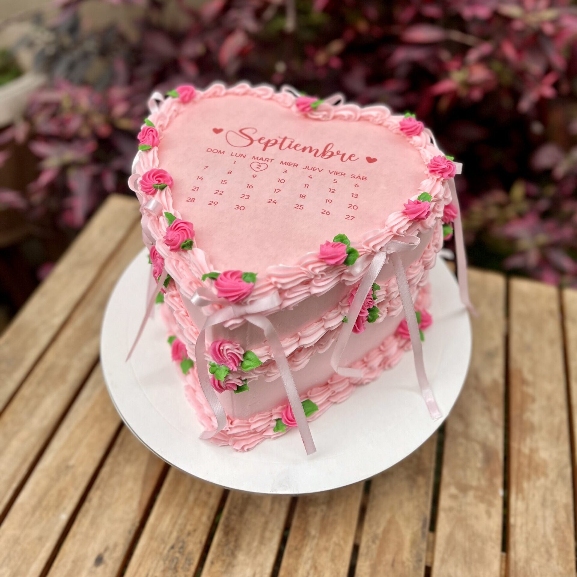Un burncake lleno de encanto y dulzura, bañado y decorado en buttercream suave. Sus delicadas rositas en buttercream y los lazos de tela le dan un estilo romántico y elegante, convirtiéndolo en el detalle perfecto para celebrar momentos especiales con ternura.