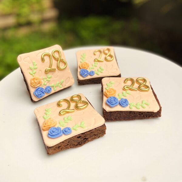 Estos brownies decorados forman parte de nuestro Dulce Pack, una opción personalizada donde puedes combinar distintos postrecitos y crear el pedido ideal para tu celebración.